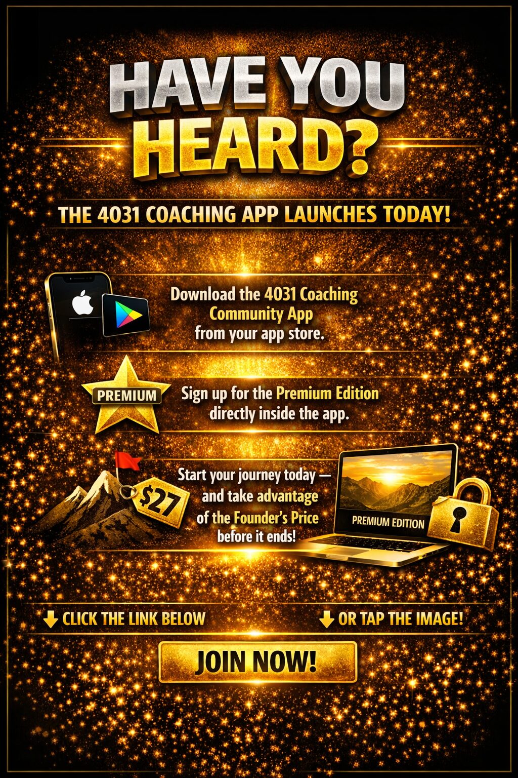 Today’s the day — the 4031 Coaching Community App is officially live again! You can now sign up for the Premium Edition directly inside the app and start taking advantage of all the new features built to help you grow with clarity, purpose, and momentum.